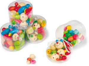 Rozmer: 27x20x2 cm Vek: 3 + Materiál: drevo Obsahuje: 157 navliekacích korálikov, 6 navliekacích stuh, 3 prívesky