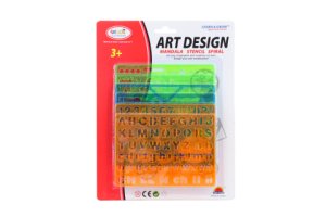Sada obsahuje 6 plastových šablón s písmenkami, číslicami, tvarmi, znakmi a obrázkami.