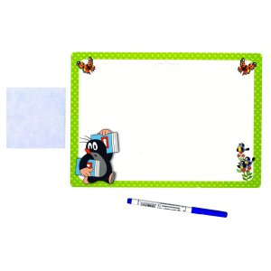 materiál pevný silný kartón, lesklý povrch z rubovej aj lícovej strany, súčasťou výrobku 2 stierateľné popisovače modrej a čiernej farby, slúžia na opakovaný nácvik písania i kreslenia, tabuľka vytvorená na …