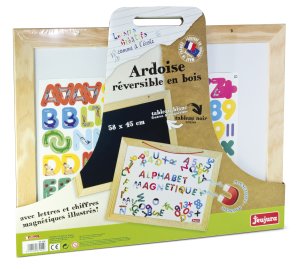 Rozmery: 88x120x44 cm Nastaviteľná tabuľa do max. výšky 120 cm Vek: 3+ Materiál: drevo Obojstranná tabuľa na kriedu i magnety Vrátane príslušenstva Vyrobené vo Francúzsku