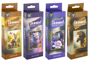 Vytvorte si vlastný trblietavý obrázok pomocou obľúbenej techniky diamond painting! Každý set obsahuje všetko potrebné na dokončenie krásneho obrázku s motívom zvieratiek – líška, mačička, vtáčik a koník.