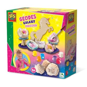 Objavte geody! S touto sadou od SES Creative môžu deti objaviť skutočné kryštály a vystaviť ich na drevenom stojane pre jednorožcov.