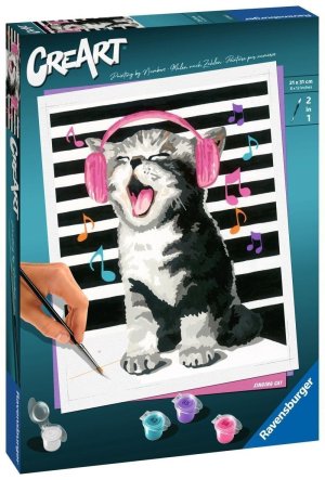 Zábavné maľovanie podľa čísel. Balenie obsahuje 2 obrázky, sadu 6 farieb a štetec.