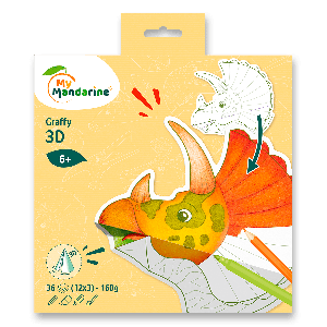 Omaľovánky Avenue Mandarine Graffy Pop Mandala 3D s predkreslenými motívmi dinosaurov, perforovanými linkami pre ľahké zloženie a vytvorenie 3D efektu.