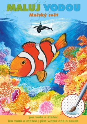 obálka s lesklou povrchovou úpravou + 8 obrázkov na vykreslenie na vybavenie obrázkov STAČÍ LEN VODA A ŠTETEC v obrázkoch sú farebné bodky, ktoré po rozotrení vodou obrázok vyfarbia