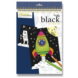 Omaľovánky Avenue Mandarine Graffy Black vo veľkom formáte s motívom vesmíru. Čierna podkladová farba papiera skryje možné preťahovanie.
