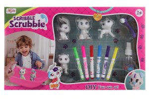 Sada maľovania zvieratiek. Balenie obsahuje 4 zvieratká, 6 farbičiek, vaničku, kefku a fľaštičku s rozprašovačom.