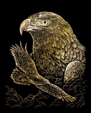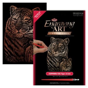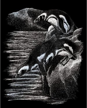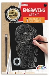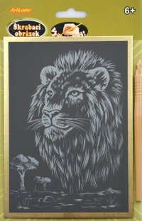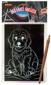 Sada obsahuje obrázok vytlačený na čiernom kartóne a umelohmotné škrabacie pero.