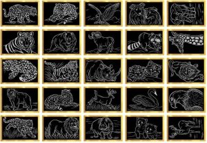 Úžasne pestrofarebná škrabacia aktivita zabaví aj tie najmenšie. Škrabajte špeciálny čierny papier a vytvorte farebný svet zvierat.