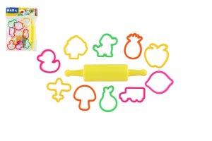 Modelovacia sada obsahuje valček veľkosti cca 22 cm, radielko, stierku/lyžicu a 3 formičky.