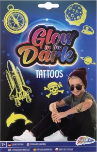 Sada detských tetovaní žiariacich v tme obsahujúca 2 listy/archy s rozmermi 20x13 cm