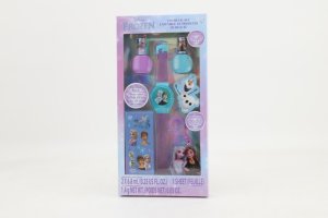 Kozmetická sada sa s dvoma lakmi na nechty, rúžom v hodinkách, príveskom a samolepkami.