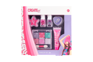 Sada líčenia Creat it Lila Turquoise – obsahuje 2 laky na nechty, kriedu na vlasy, veľký štetec, balzam na pery, rúž, malý obojstranný štetec, sada 6 trblietavých tieňov na oči.