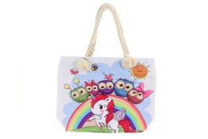 Kabelka cez rameno s motívom jednorožca a sovičiek.