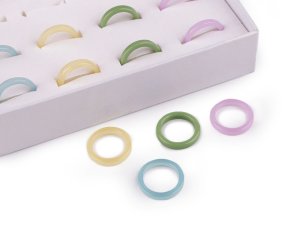 Mix plastových prstienkov je zabalený v papierovej kazete, ktorá má priehľadné plastové veko.