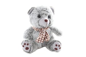 Plyšový medveď s rozmermi 20x25x16 cm.