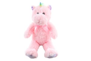 Plyš Jednorožec zvukový o veľkosti cca 22 cm. Po stlačení vydáva kúzelné zvuky jednorožca a klusu. Prevádzka na 3 gombíkové batérie. Vek 0+
