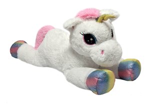 Hebučký plyšový jednorožec s kopýtkami v dúhových farbách.