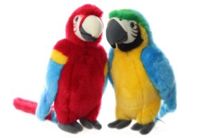 Plyšový farebný papagáj o veľkosti cca 28 x 14 x 32 (s chvostom) cm.