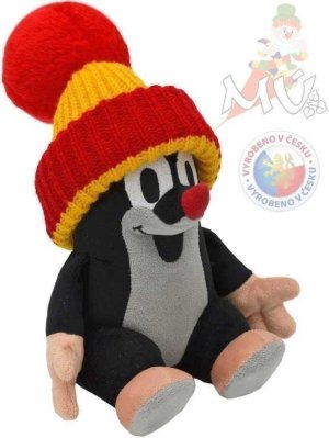 Mikro-plyšový Krtko so snímacou čiapkou, v spodnej časti naplnený fazuľkami, rozvíjajúce hmatové schopnosti dieťaťa.