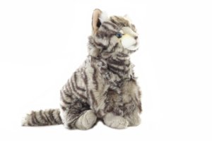 Plyšová mačka divoká o veľkosti 26 x 13 x 19 cm.