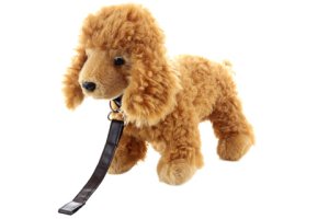 Plyšový pudel s obojkom. Rozmery 26x10x23 cm.