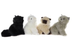 Plyšová mačka sediaca o veľkosti cca 25,5 x 28 cm (vrátane chvosta).