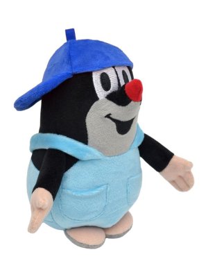 Sediaci plyšový Krtko s nezbednou šiltovkou.
