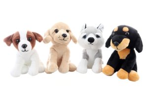 Plyšový pes sediaci s rozmermi cca 18x12x13 cm. 4 druhy - dodávame podľa skladovej dostupnosti.