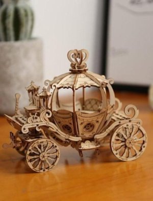 Drevené 3D puzzle. Zostav si prepracovaný model rozprávkového kočiara s krásnymi detailmi za pomoci obrázkového návodu.