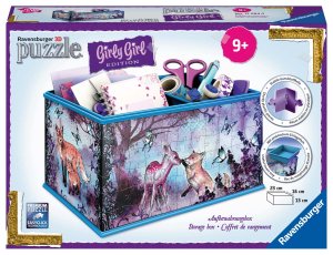216 pevných plastových dielikov puzzle slúžiacich na vytvorenie pevnej úložnej krabice, ktorá je kúzelným doplnkom izby každého dievčaťa.