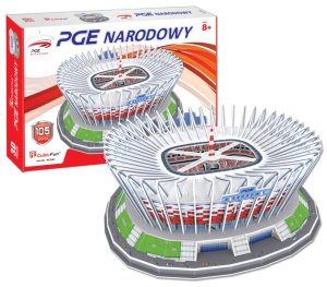 3D puzzle - stavebnica poľského štadióna od CubicFun vyrobená zo špeciálneho materiálu - asi 3mm silnej peny potiahnutej laminovaným potlačeným papierom.