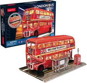 Úchvatný 3D model Londýnskeho autobusu s LED osvetlením! 3D puzzle - stavebnica zo série Night Edition od CubicFun vyrobená zo špeciálneho materiálu - asi 3mm silnej peny potiahnutej laminovaným potlačeným …