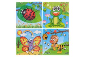 Drevené puzzle 9 dielikov s motívom zvieratiek.