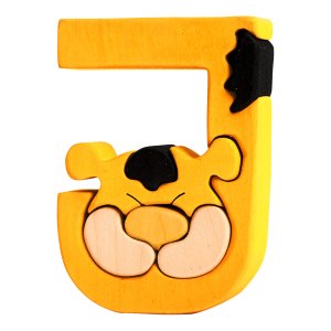 Detské puzzle z dreva. Dieliky sú umiestnené na drevenej podkladovej doske s vyfrézovaným okrajom na uľahčenie skladania.