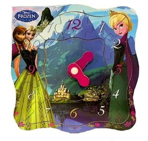 Drevené hodiny s Annou a Elsou z rozprávky Ľadové kráľovstvo.