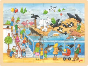 Puzzle sa skladá na podkladovú dosku so zvýšeným okrajom, ktorá slúži aj na jeho skladovanie.