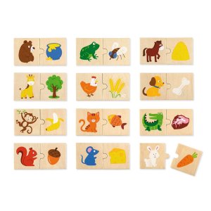 Táto skladačka sa skladá z dvoch dielikov, batoľa si každé zviera spojí s tým, čo rado jej.