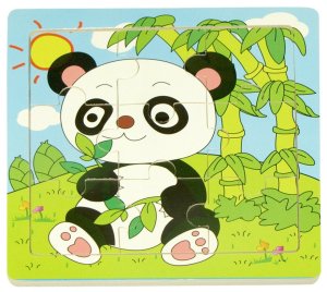 Drevené detské puzzle (skladačka) v rámčeku v pútavých farbách pre najmenšie deti - s deviatimi dielikmi.