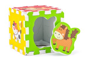 Penové puzzle s vyberateľným stredom zoznámia deti s domácimi zvieratkami.