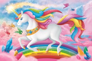 Krásne farebné puzzle s motívom jednorožca obsahuje 100 dielikov, veľkosť zloženého obrázku 41 x 27,5 cm. Rozmery balenia 29 x 19 x 4 cm. Vhodné pre deti od 5 rokov.