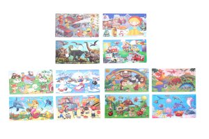 Puzzle o veľkosti 22,5 x14, 5 cm, 30 ks. 12 rôznych motívov.