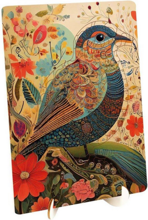 Drevené puzzle s rôzne tvarovanými dielikmi vrátane podkladovej dosky vhodné pre deti aj dospelých.