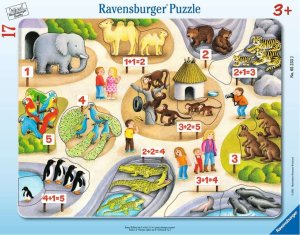 Detské doskové puzzle s početnými úlohami (dieliky sa skladajú priamo na priloženú podložku s rámčekom).