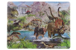 Puzzle s motívom dinosaurov. Materiál kartón.
