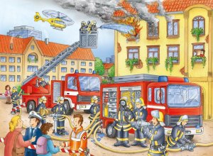 Puzzle pre deti s veľkými XXL dielikmi a zasahujúcim tímom hasičov.