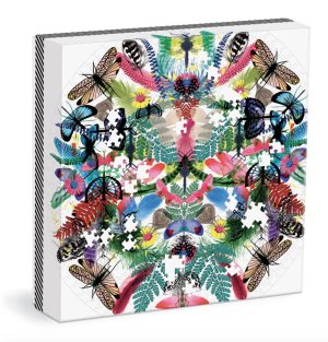 Okrúhle puzzle Christian Lacroix Heritage Collection Caribe 500 dielikov predstavuje Lacroixovu exotickú kaleidoskopickú víziu tropického života, od hmyzu a kvetov až po rozmanitosť a extravaganciu peria.