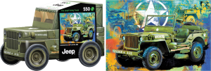 Puzzle v plechovej krabičke v tvare vojenského džípu.