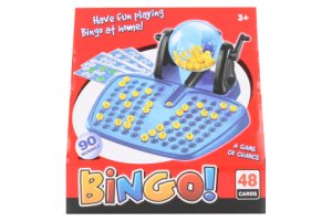 Hra Bingo obsahuje hraciu plastovú dosku, žrebovacie loptičky, žrebovaciu guľu a lístky na bingo.