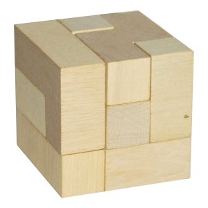 Krásny drevený hlavolam v tvare kocky poteší každého malého riešiteľa hlavolamov.